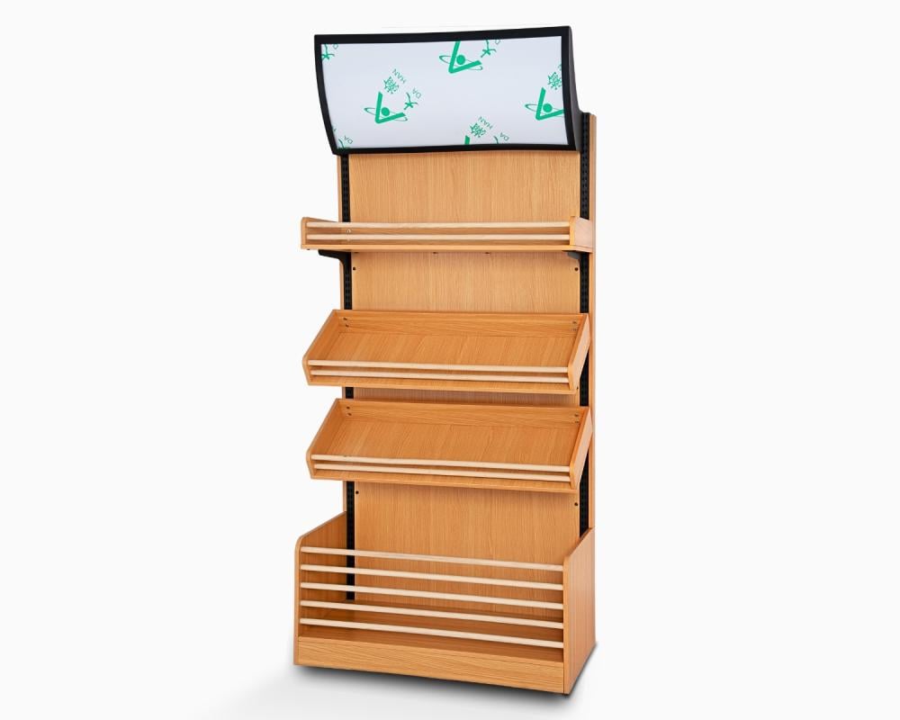 وحدة رفوف خشبية مصممة خصيصاً لعرض منتجات الخبز والمعجنات بشكل جميل ومرتب .