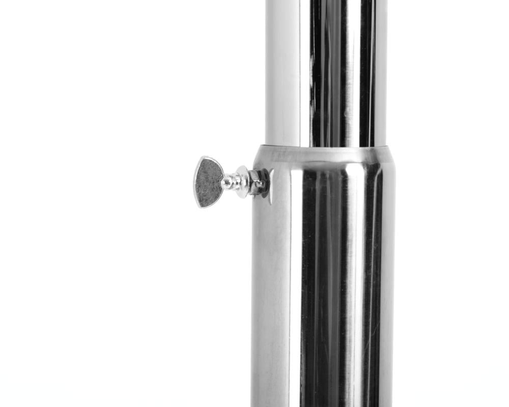سارية علم داخلية فاخرة بتصميم راقٍ ولون فضي مصنوعة من فولاذ مقاوم للصدأ مع قاعدة كبيرة تضمن الثبات. قابلة للتحكم في الارتفاع حتى 3 أمتار