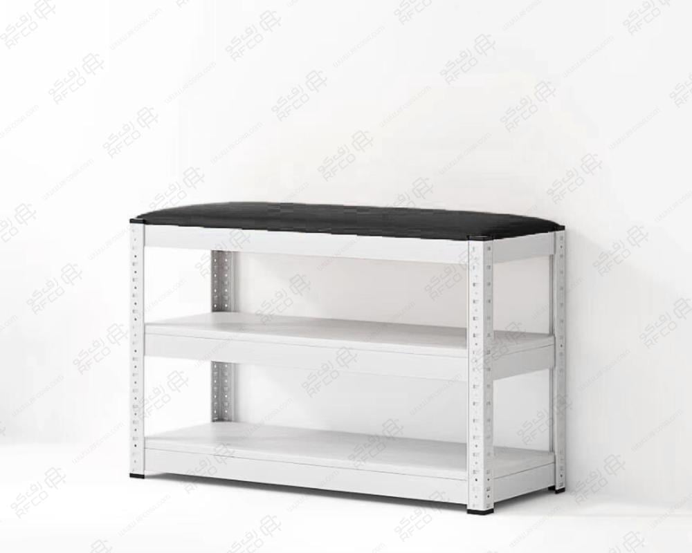 رفوف أحذية مع جلسة جلد مبطنة