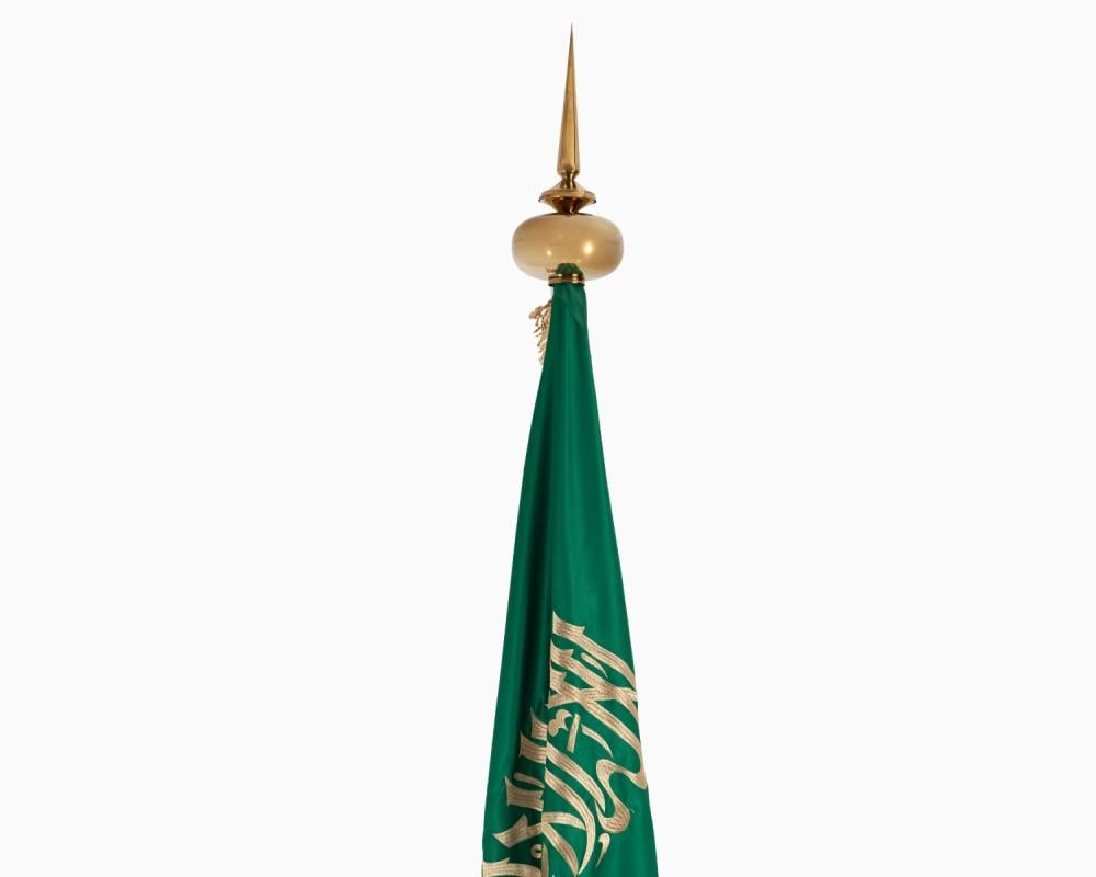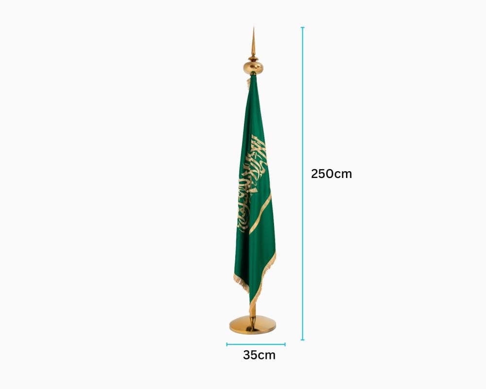 سارية علم بتصميم متحرك باللون الذهبي تأتي مع علم المملكة العربية السعودية المصنوع من قماش عالي الجودة ومطرز بخيوط ذهبية بدقة