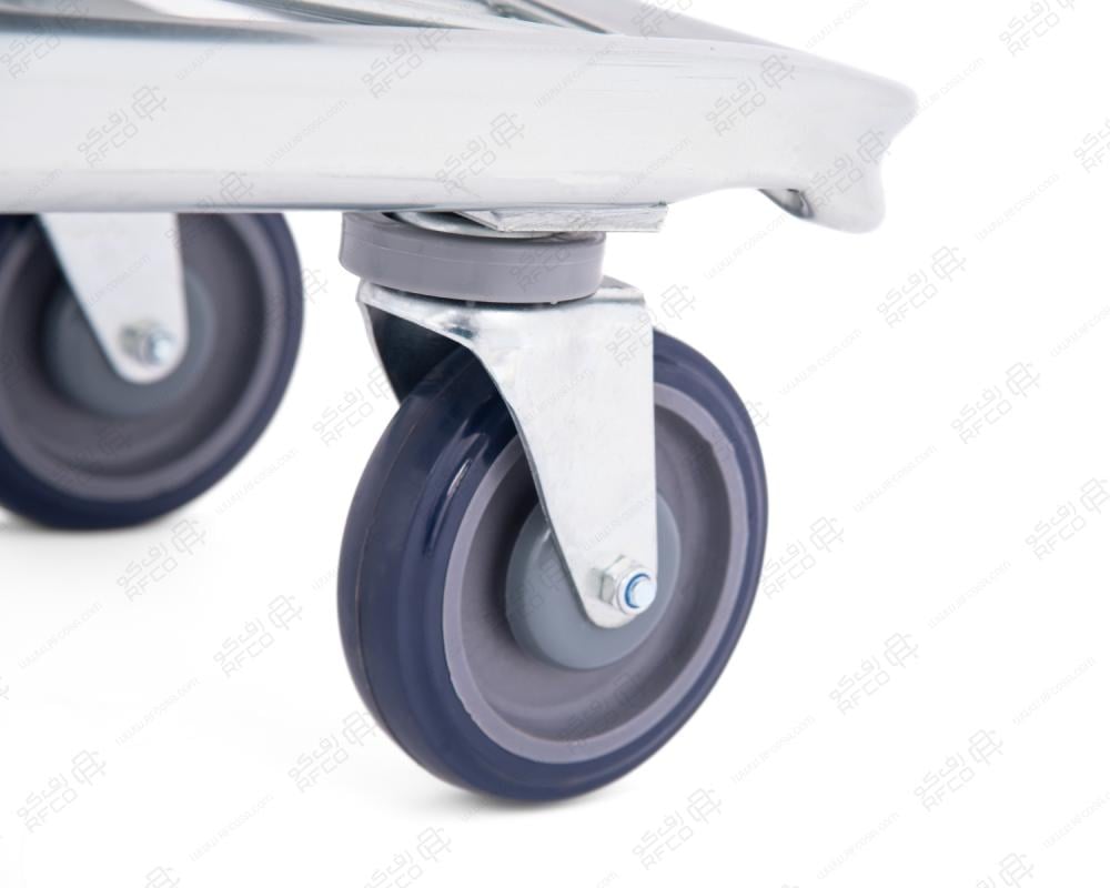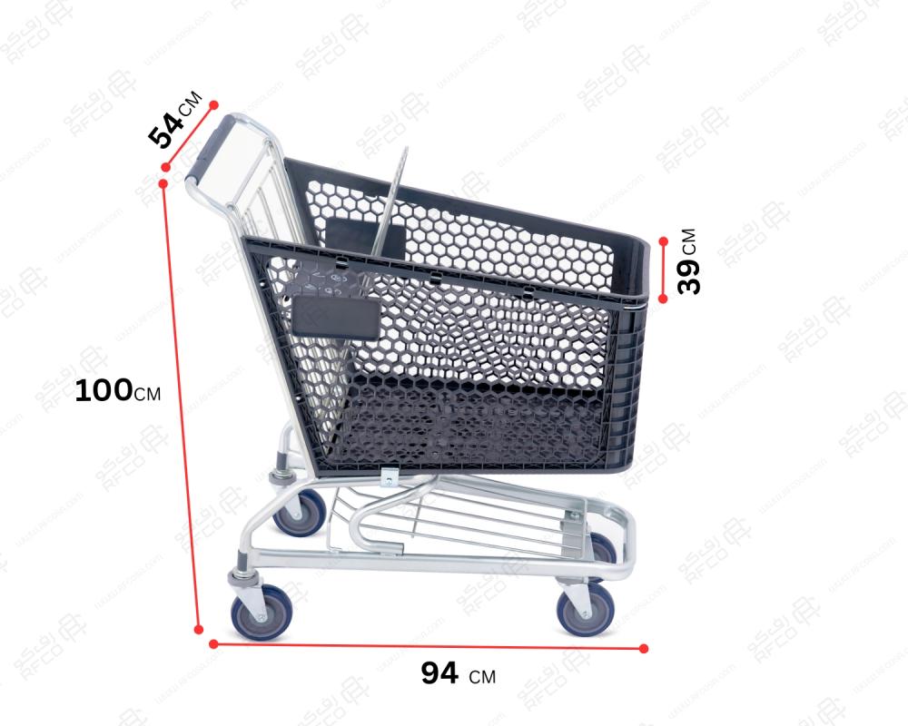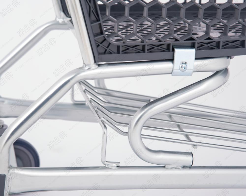 عربة تسوق بسلة بلاستيكية وهيكل معدني قوي