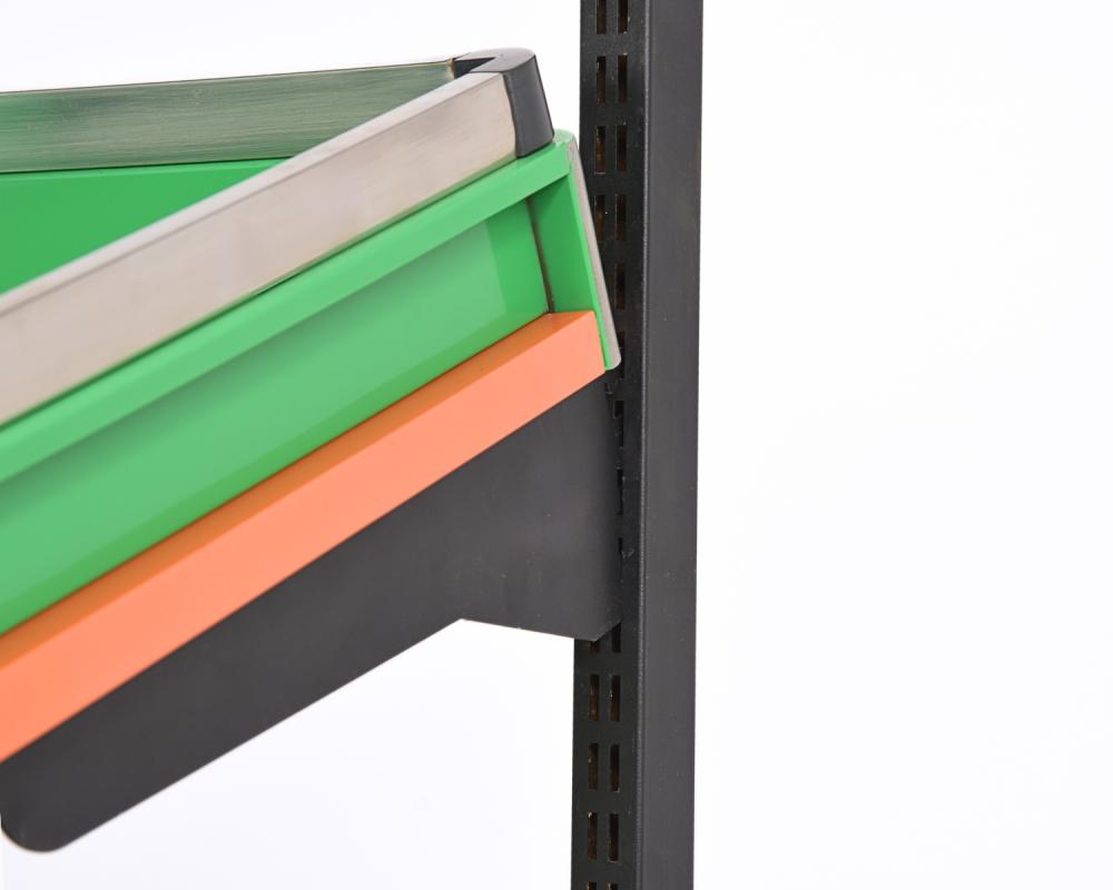 أرفف المائلة تتيح رؤية واضحة للمنتجات من جميع الزوايا، مما يسهل على العملاء اختيار المنتجات.