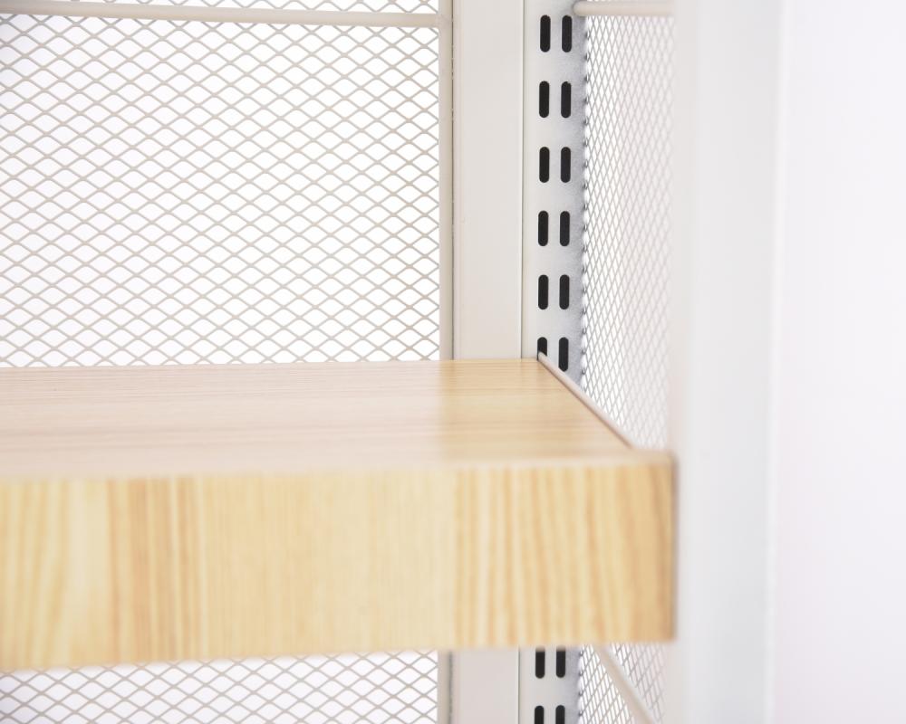 - Strong compressed wood shelves suitable for heavy use