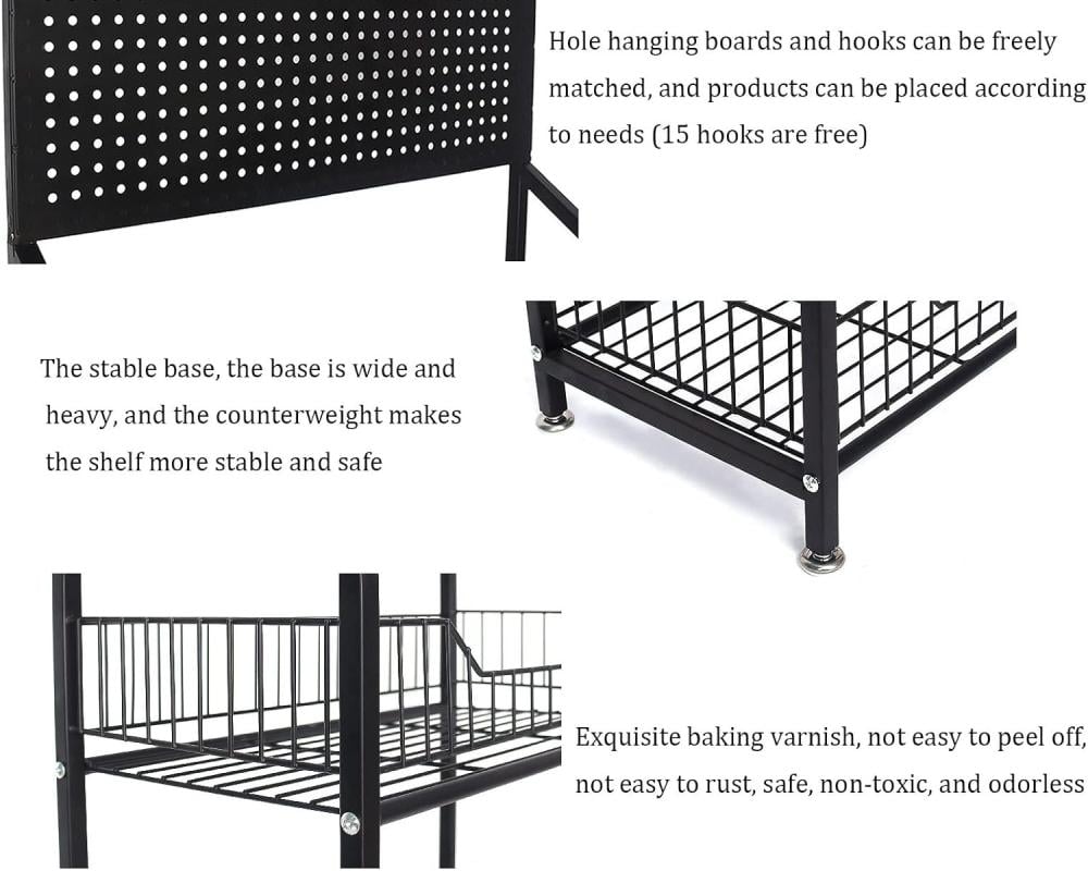 🧺 Display Stand with 4 Mesh Baskets and Perforated Top Panel – Smart and Organized Design