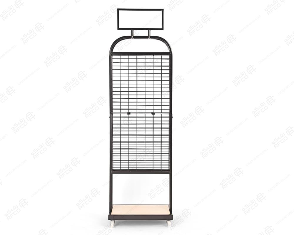 ستاند عرض حديد شبكي مع قاعدة خشبية ولوحة مثالي لتعليق المنتجات في المحلات والمعارض