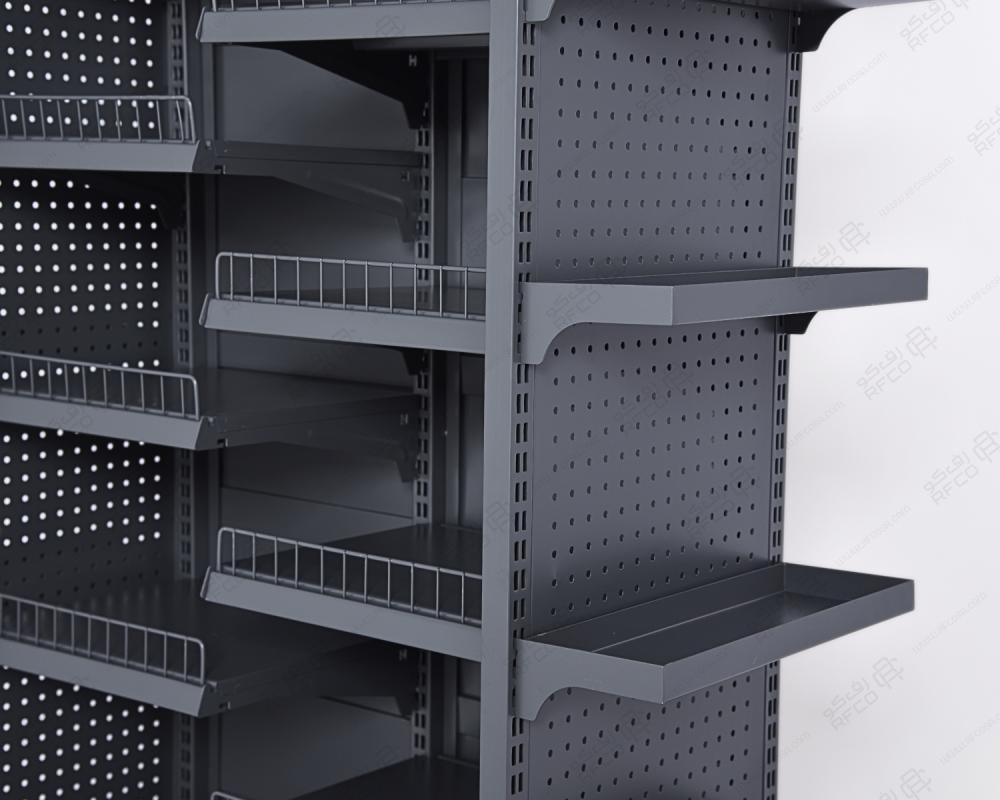 - جوانب مخرمة: توفر الجوانب المخرمة إمكانية تعليق المنتجات باستخدام خطافات أو حوامل، مما يتيح استخدامًا متعدد الأغراض ويزيد من سعة العرض.