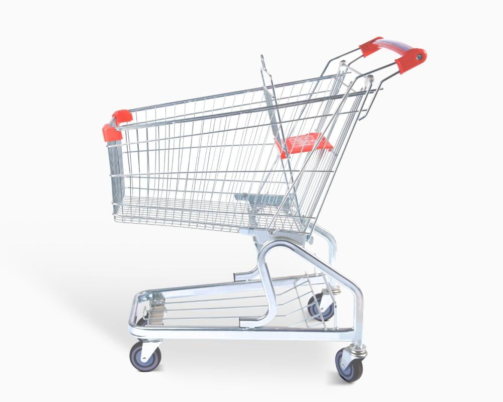 عربة تسوق معدنية صُممت لتكون قوية ومتينة، مما يجعلها قادرة على تحمل الأوزان الثقيلة والاستخدام المتكرر.
