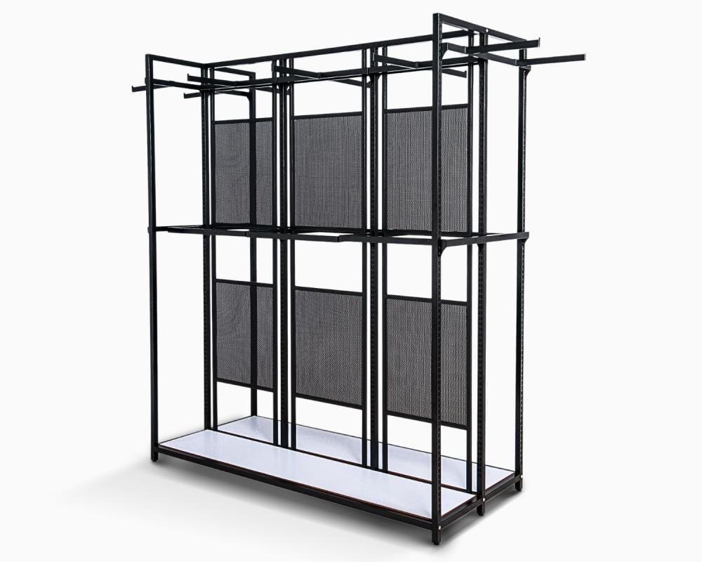 استاند عرض ملابس معدني بتصميم احترافي من طابقين و4 اتجاهات لعرض أكبر عدد من الملابس بشكل منظم وجذاب