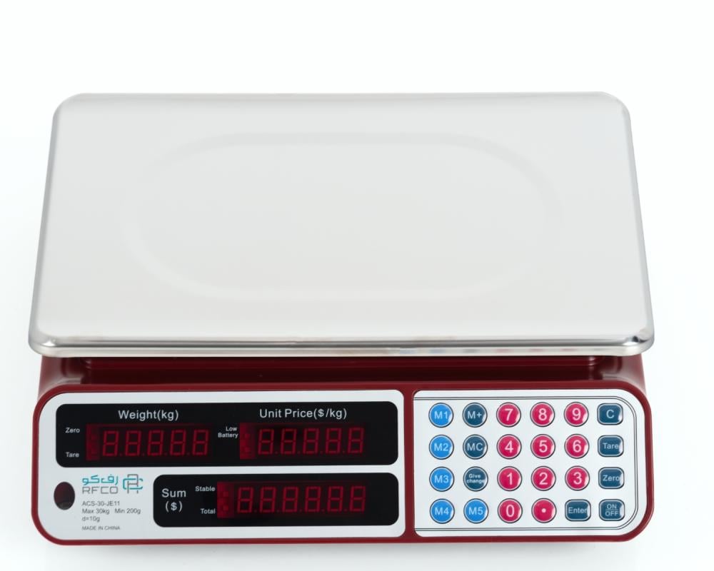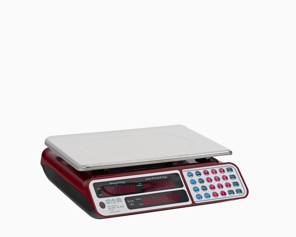 - شاشة رقمية واضحة لعرض الوزن والسعر والمجموع