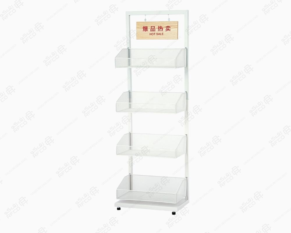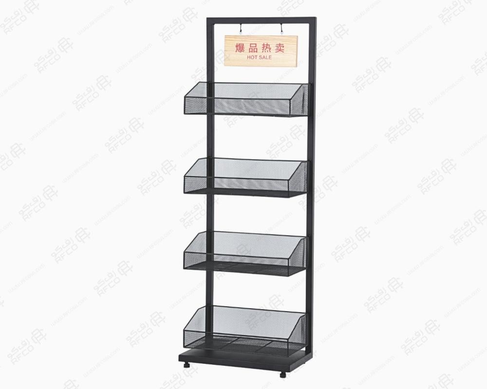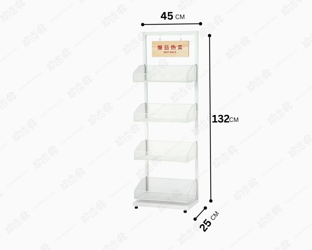 ستاند عرض معدني بأربعة أرفف مثالية لعرض المنتجات بشكل أنيق ومنظم في المتاجر والمعارض يتميز بتصميم عصري ومساحة عرض واسعة